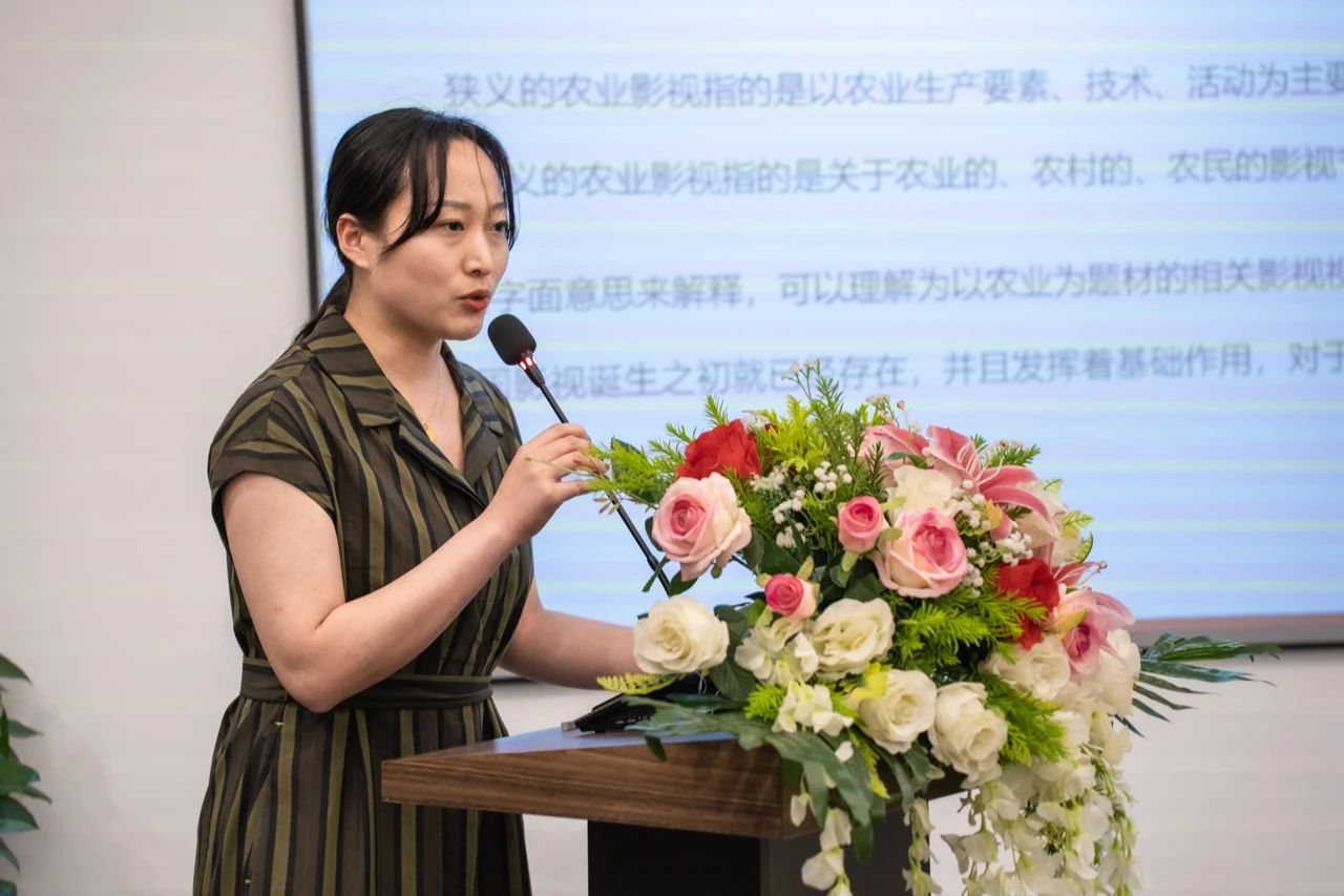我院参会教师陈儒在产教融合与国际传播分论坛中发表主题报告以《新时代下农业影视的新模式探究》为题分享前沿课程教学体系中农业影视的融入与创新。