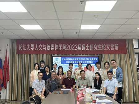 答辩组严格遵照答辩程序,答辩研究生从选题背景、研究内容、核心观点和研究价值等方面进行了汇报,答辩老师主要从问题意识和创新意识两个方面指出了答辩论文的优点和不足,并提出了答辩问题。本次参与答辩的研究论文涉及外国文学、现当代文学、学科语文教育等多个研究方向,既有具体作家作品的研究,也有教学方法的探究,充分展现了人文学院研究生们的研究兴趣和学术水平。最后,答辩主席黎跃进教授做总结发言,他认为作为研究生答辩论文,应该站在更高层面,要严肃指出还存在的问题和不足,虽然通过了盲审,但并不代表一劳永逸,问题不存在;答辩会后,要严格按照答辩会上提出的意见,认真修改,以备教育部论文的抽检。同时,他也高度肯定了我院研究生培养的严格规范,部分论文确实体现了研究生较高的研究能力和水平。