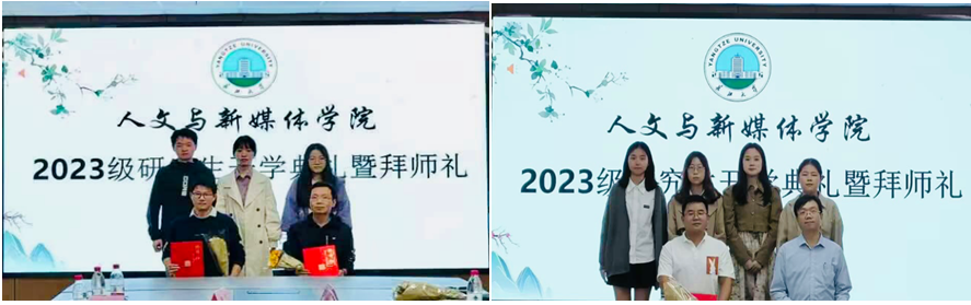 随后,迎来了庄重的拜师礼环节。全体研究生新生依次向导师献花,递交拜师贴,鞠躬,行拜师礼,并与导师合影留念。拜师仪式在庄重而又温馨的气氛中结束。