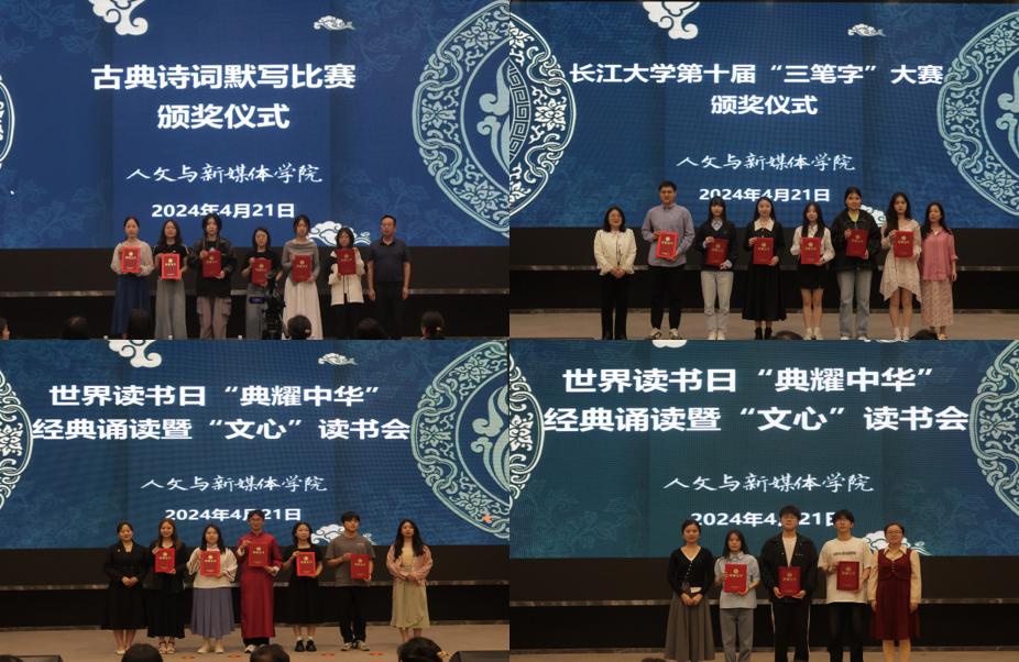 活动最后,学院对近期开展的中华经典读写讲活动进行结果揭晓并表彰。学院党委副书记竺正海、班主任和辅导员代表为古典诗词默写比赛、williamhill中文第十届“三笔字”大赛及 “文心”读书会比赛等获奖同学颁奖。