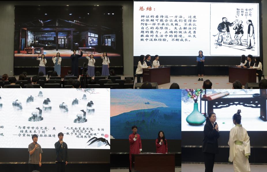 在阅读中保持成长。“文心”读书会五组参赛同学依次登台分享阅读的力量,他们运用相声、小品、辩论、情景剧等多种形式激情演绎,让我们共沐书香,重燃对阅读的热爱。情景演绎的《青春之歌》生动地展示了林道静充满坎坷但却丰富多彩的人生之旅,展现革命青年的坚定爱国情怀;《苏东坡传》揭示了苏东坡屡遭挫折,却从未放弃对生活的热爱,始终保持乐观开朗的人生态度;相声版的《徐霞客游记》展现了祖国的壮丽景色、多元文化和丰富历史,引导大学生科学求真;辩论形式的《阿Q正传》围绕精神胜利法展开驳论与辩证,号召我们在实干奋斗中实现人生价值;古今穿越的《离骚》借屈原精神,坚定青年大学生的理想信念,立志做正义守护者。