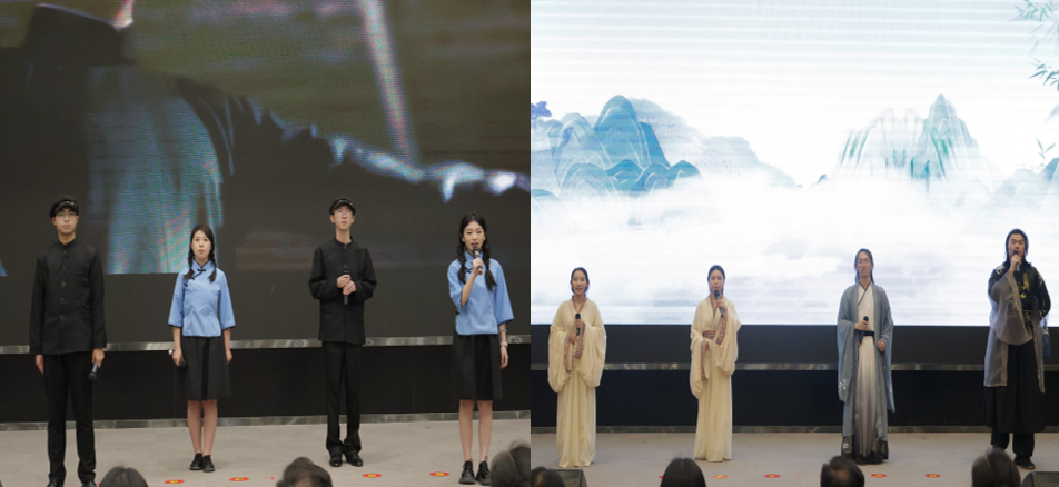 在诵读中启智润心。学生会慷慨诵读李大钊的《青春》,重现激情豪迈,激励青年学子汲取奋进力量,争做时代新人;灵均汉服社铿锵演绎韩愈的《师说》,句句含情,洋溢着对师者的尊敬和感激。