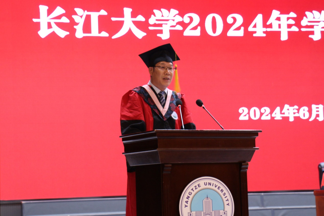 在全场热烈的掌声中,何世龙向圆满完成学业的毕业生表示祝贺。临别之际,作为师长殷殷嘱咐:第一句话,热爱可抵岁月漫长。无论在任何岗位,始终保持对生活的热爱和激情。因为,热爱是坚持的最好燃料。没有任何一项成就,不是在热爱中取得的。岁月悠长,唯有热爱才能让我们不惧波澜。第二句话,做一个内心有光的人。希望毕业生在经营繁琐的俗世生活时,心中始终要有超越物质层面、对俗世生活之外的东西的追求。尤其不能在对功名利禄的追逐中,失去了道德与法律的底线。走向社会,最重要的是拥有脱俗、善良、正义、担当等文明与道德之光。最后,他代表学院向毕业生表达真诚的谢意和祝福。