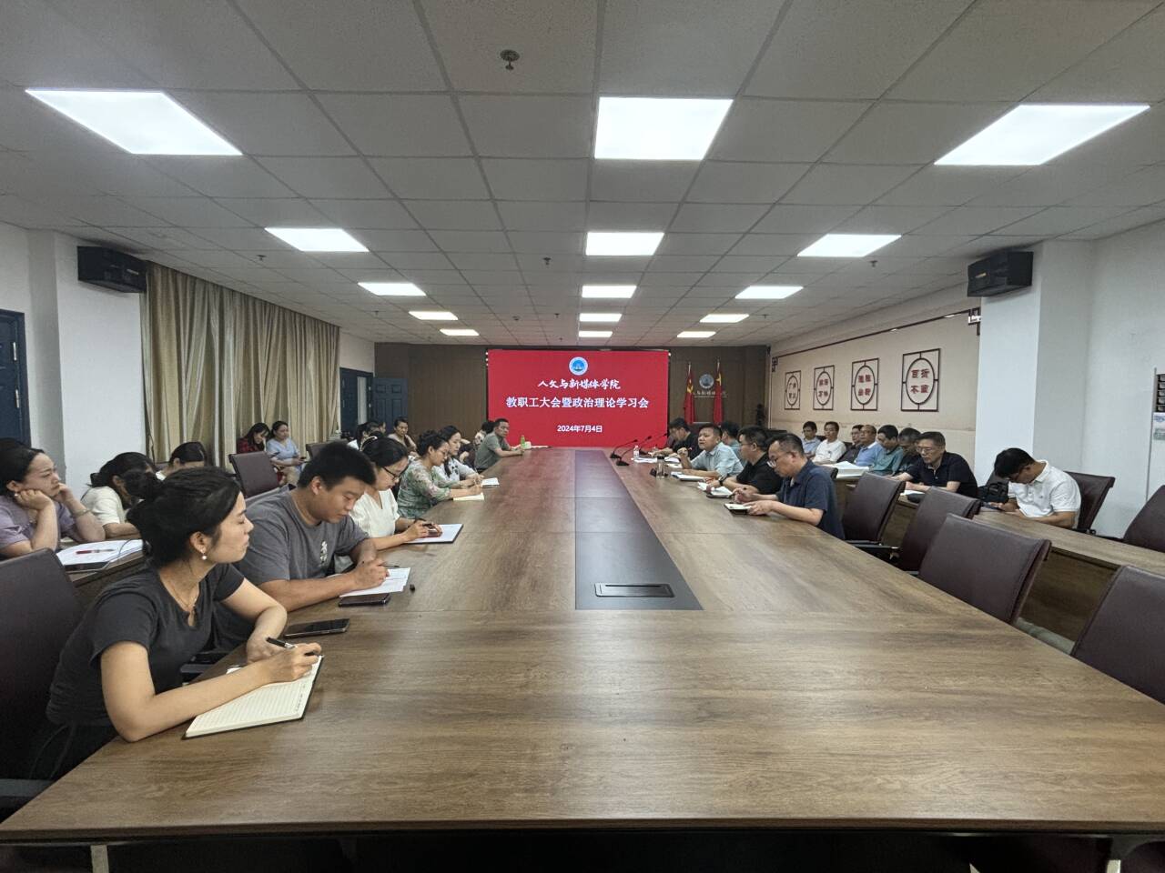 (通讯员 田华蓉)7月4日下午,学院在文科楼705会议室召开教职工大会,部署暑期相关工作并通报2024年上半年全面从严治党工作情况。会议由院党委书记李波主持。