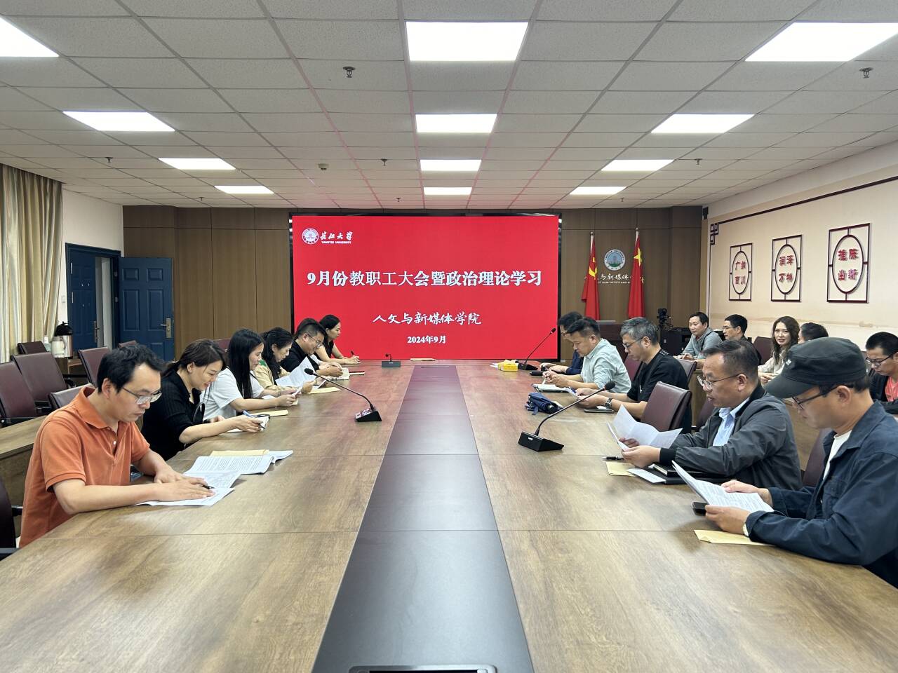 (通讯员 田华蓉)9月26日下午,学院在文科楼705会议室召开9月教职工大会暨政治理论学习会,通报开学以来相关工作。会议由院党委书记李波主持。