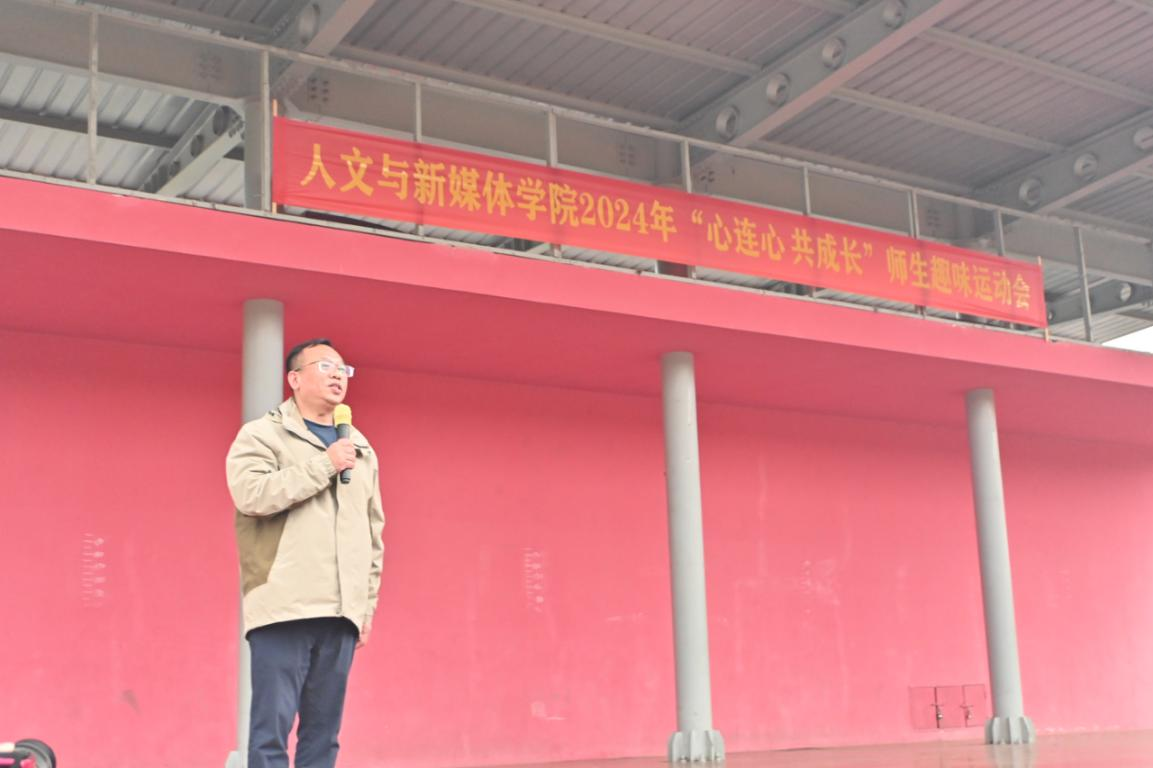 在全体师生经过健身操的热身后,开场仪式正式开始。运动员代表、裁判员代表分别上台发言,学院党委副书记竺正海宣布运动会开幕。
