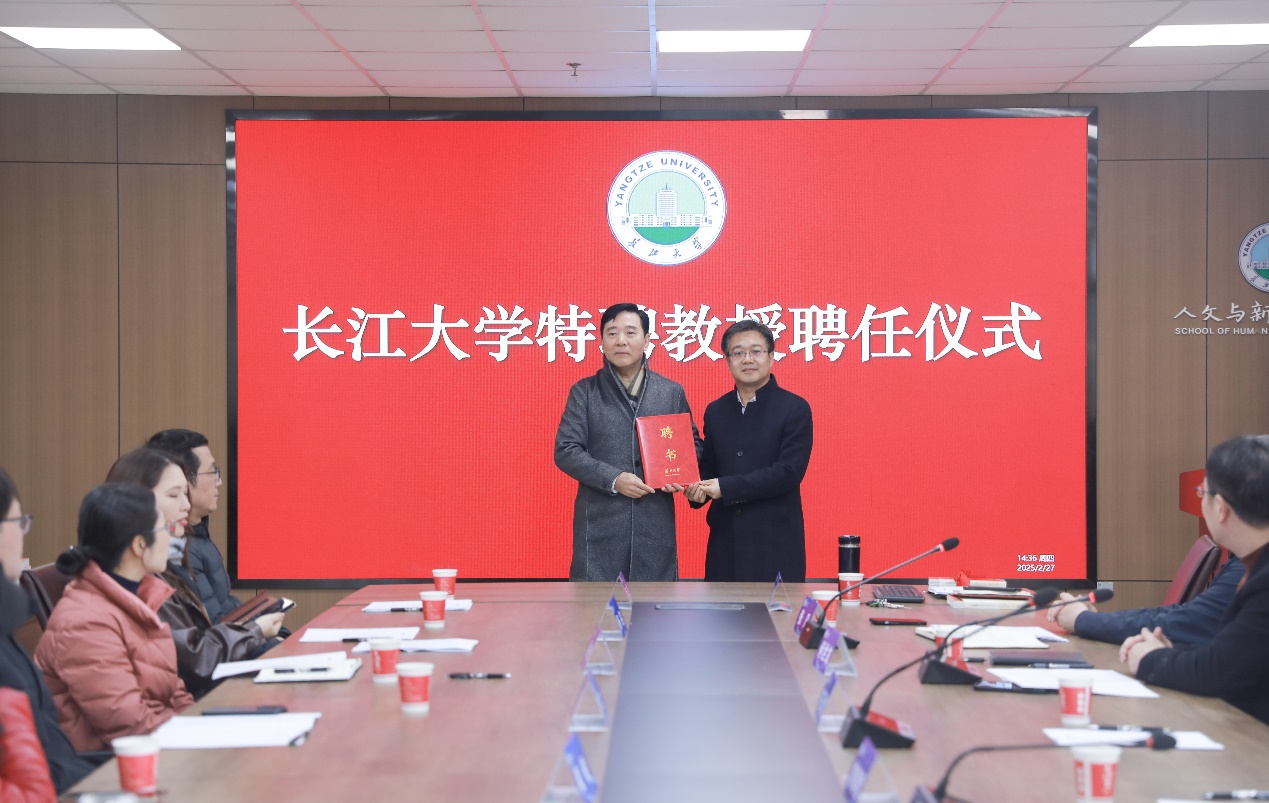 2月27日,在东校区文科楼705会议室举行的聘任仪式上,著名楚文化研究专家刘玉堂教授从校党委常委、纪委书记、湖北省监察委员会驻williamhill中文监察专员刘靖君手中接过聘书,成为我校特聘教授,助力我校提升楚文化研究水平,加强学科建设与发展。