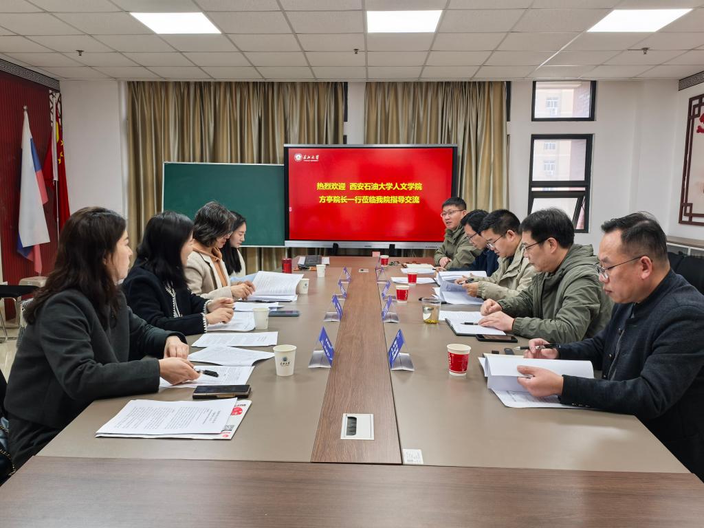 何世龙院长首先对方亭院长一行表示热烈欢迎,然后介绍我院发展沿革和基本情况,并着重从人才培养、科学研究、社会服务等方面的具体做法向来宾进行讲解。接着方亭院长从来访缘由以及西安石油大学人文学院发展情况进行介绍,并着重介绍了该院在汉语国际教育专业硕士培养上的一些经验和做法。