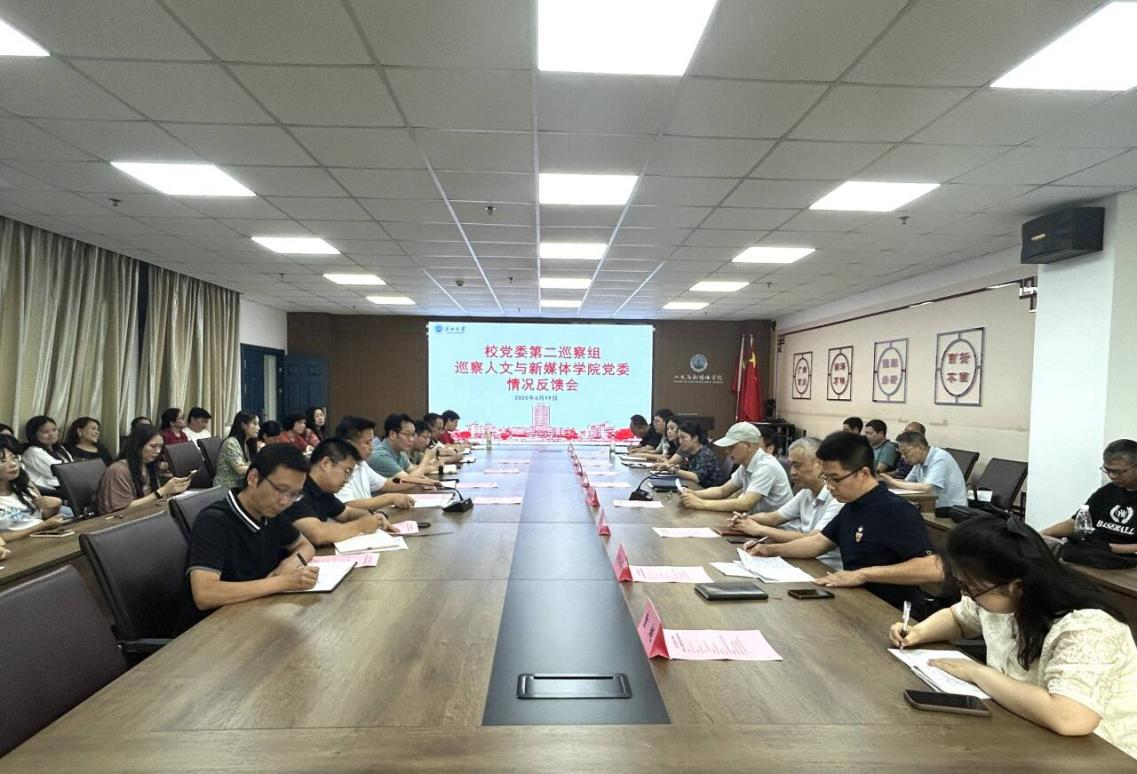 (通讯员 田华蓉)6月19日下午,校党委第二巡察组巡察william威廉中文党委情况反馈会召开。校党委常委、纪委书记刘靖君,校党委第二巡察组组长杨松桃,巡察办相关负责人,巡察组全体成员,william威廉中文领导班子成员和全体教职工参会。会议由william威廉中文党委书记李波主持。