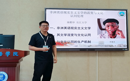 秦鹏举老师的发言题目为“非洲英语现实主义文学的流变与文化认同伦理”。首先,梳理非洲英语现实主义文学的风格特征和书写表征,其次,从三个阶段阐释其不同的文化认同伦理。分别为殖民时期的非洲历史文化认同,后殖民时期的国民文化认同和全球化时期的多元文化认同。具体从普遍的故事疗愈与文化修正,到运用“照相式现实主义”的书写来揭弊社会本相,再到如何既彰显本土特色,又融入世界之中的“在世界之中”(海德格尔)的多元文化认同格局。