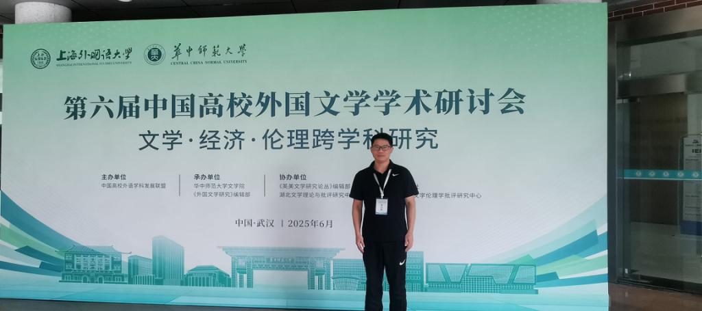 6月27至29日,我院教师秦鹏举赴华中师范大学参加了第六届中国高校外国文学学术研讨会,会议主题为“文学·经济·伦理跨学科研究”。本次会议由中国高校外语学科发展联盟主办,华中师范大学文学院《外国文学研究》编辑部承办。会议聚焦文学、经济与伦理的交叉研究,旨在促进我国高校文学研究的高质量发展,深化跨学科对话。来自上海外国语大学、北京大学、北京外国语大学、武汉大学、华中师范大学、williamhill中文等近百所高校的150余位学者齐聚桂子山,共襄学术盛宴。大会围绕会议主题进行了7场主旨发言以及13组专题讨论。
