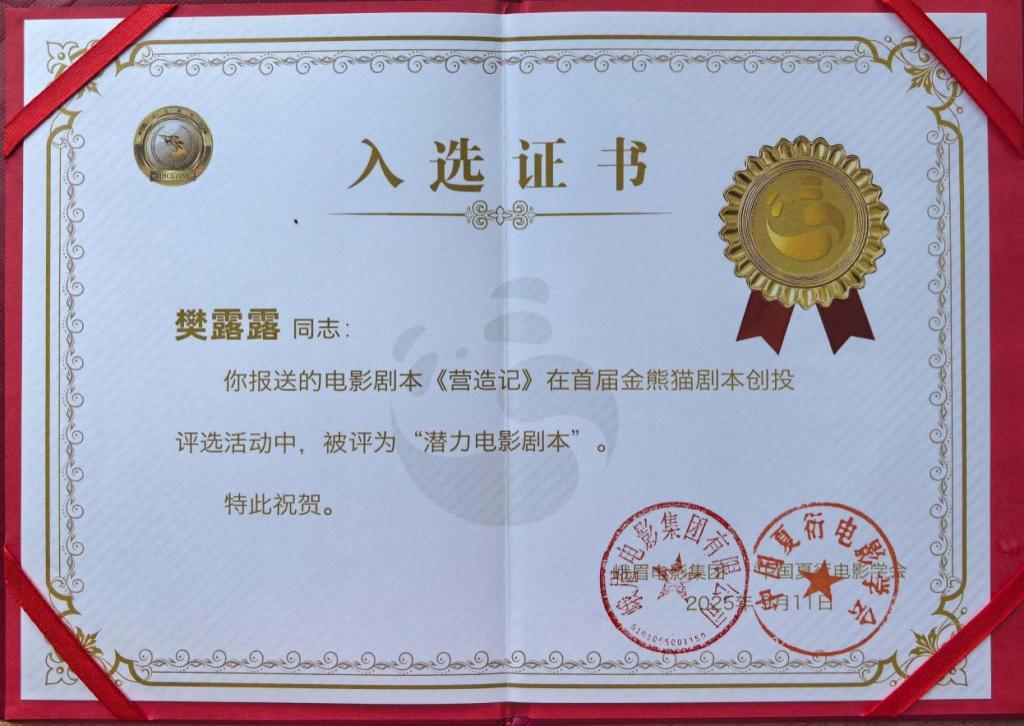(通讯员 耿传令)我院教师樊露露创作的电影剧本《营造记》在“金熊猫首届剧本创投活动”中荣获“潜力电影剧本奖”,樊露露老师近日赴成都接受了表彰。