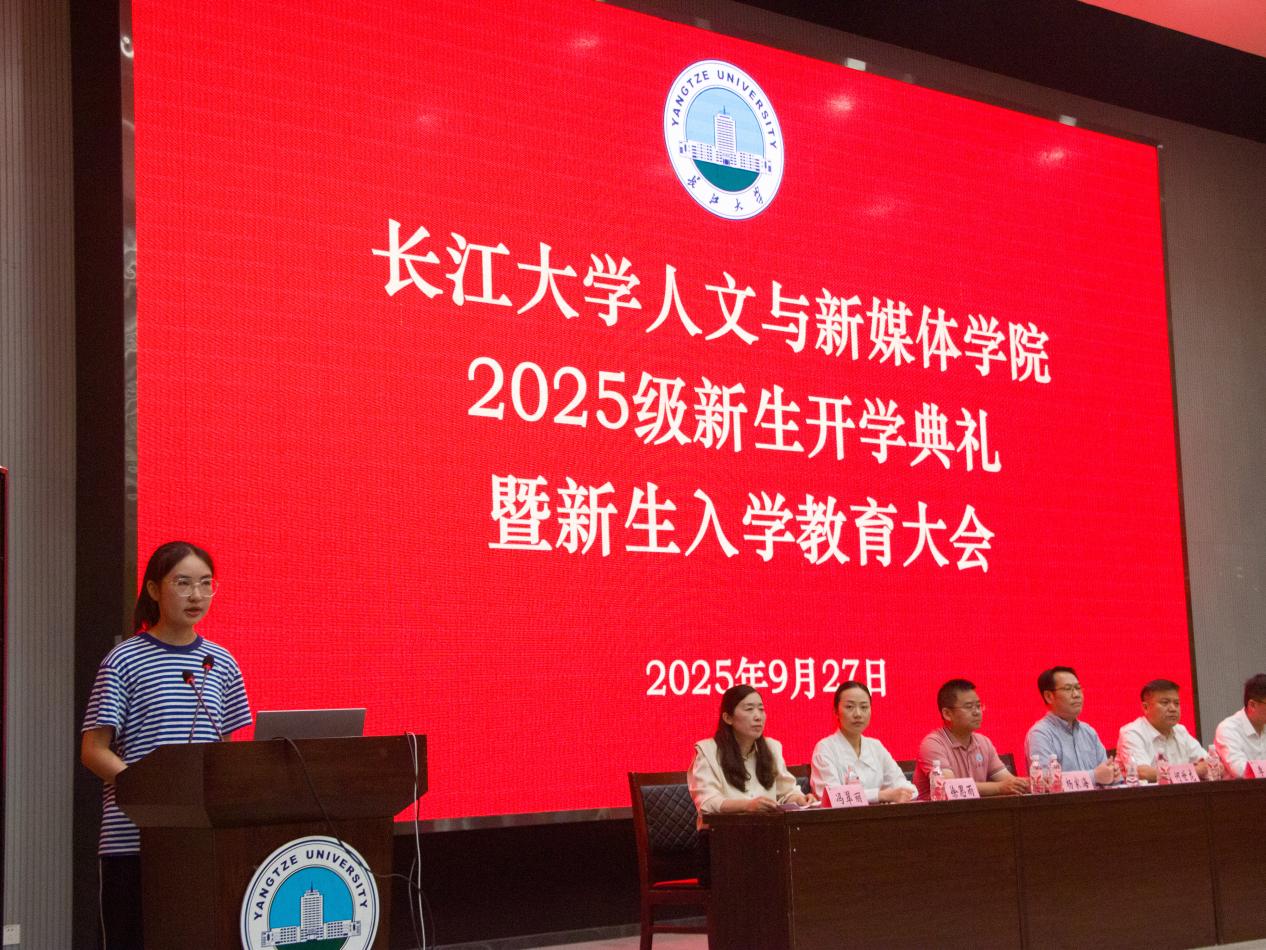 新生代表中师32501班唐褀纾同学倡议全体新生在人文学院这片热土上,视江海如小流,乘长风破万浪,坚信在青春的舞台上,定能成就最好的自己。高年级学生代表中文12201班杨玉洁同学分享三年求学旅程的丰富收获,祝愿同学们在求学期间要珍惜时光,敢于试错!教师代表徐思雨老师寄语新生走出舒适区,尝试新事物,不惧成长坎坷,要在大学培养人文精神,磨砺人文信念,书写人生华章。