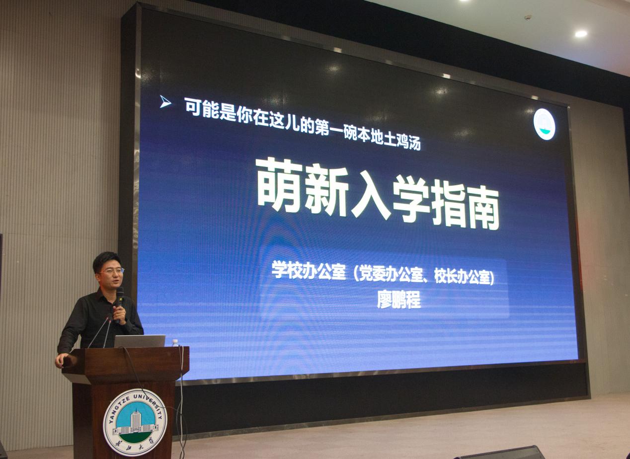 入学教育环节,学校办公室廖鹏程老师为全体新生开讲入学教育专题讲座,内容生动详实。他围绕“认识”“规划”“行动”三大关键词展开,指引新生正确认知校情校史与自身优势、科学规划未来人生蓝图、精确找准努力方向与赛道。