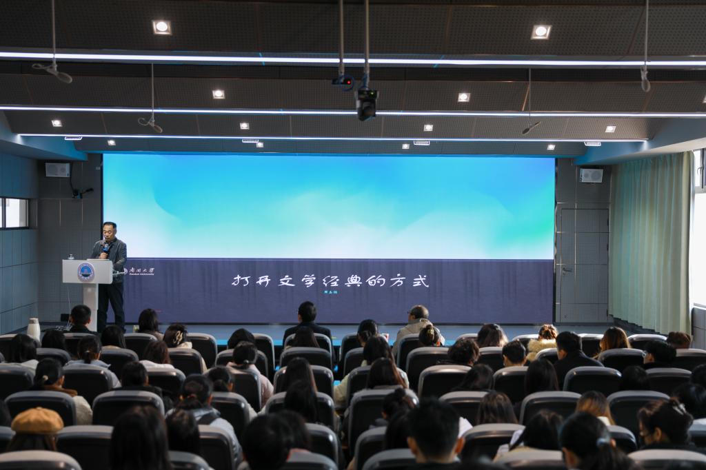 12月8日上午,“长江人文讲坛“第154讲在东校区16教313会议室成功举办。本次讲座特邀南开大学文学院周志强教授担任主讲嘉宾,开展题为“打开文学的经典方式”的专题讲座,我院副院长李征宇教授主持活动,杨家海、吴桂美、殷满堂等教师和90多名硕士研究生共同参与本次讲座。