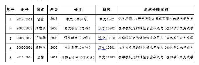根据《普通高等学校学生管理规定》(教育部令第41号)第三十条和《williamhill中文普通本科生学籍管理办法》(长大校发〔2017〕134号)第五十一条规定,对达到退学处理条件但拒绝办理退学手续或多种方式均无法联系到本人的本科生,现以公告方式送达拟退学处理告知书,公告时间7个工作日,于2021年5月6日结束公告。在公告期内,学生可向学院提出申辩和书面陈述并署真实姓名、联系方式,邮寄或直接送到william威廉中文(部)教学办;未在规定时间内提交申辩和书面陈述者,视为放弃陈述和申辩的权利。公告期满后,学院将按学校规定办理。