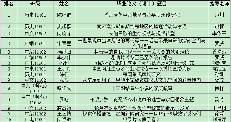 2020年6月6日,全院各答辩小组推荐出18个项目参与文学院本科论文推优评审。2020年6月8日,文学院组织对18个项目进行了二次答辩,推选出14篇优秀本科毕业论文,并视名额浮动情况预留一篇优秀论文备选。