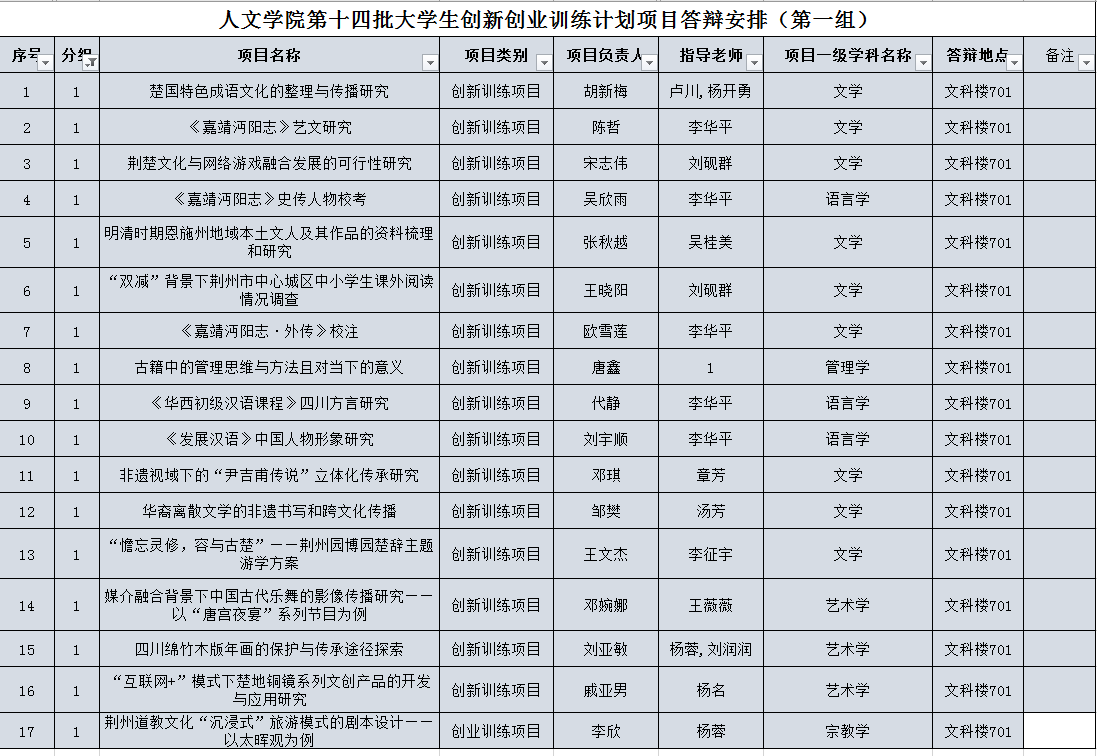 2、答辩地点:第一组文科楼701,第二组文科楼705