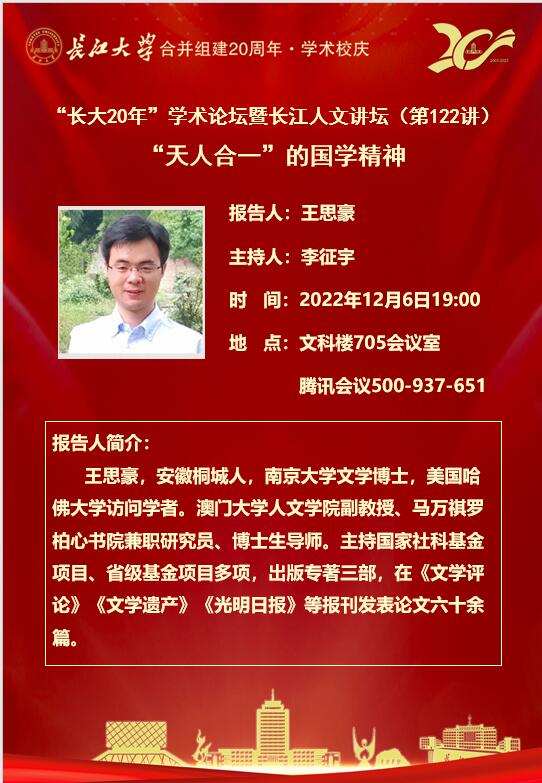 “长大20年”学术论坛暨长江人文讲坛(第122讲)