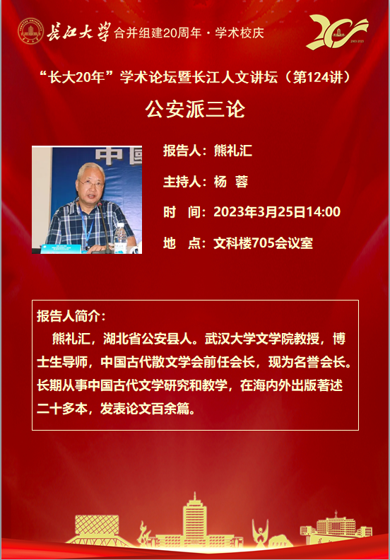 “长大20年”学术论坛暨长江人文讲坛(第124讲)